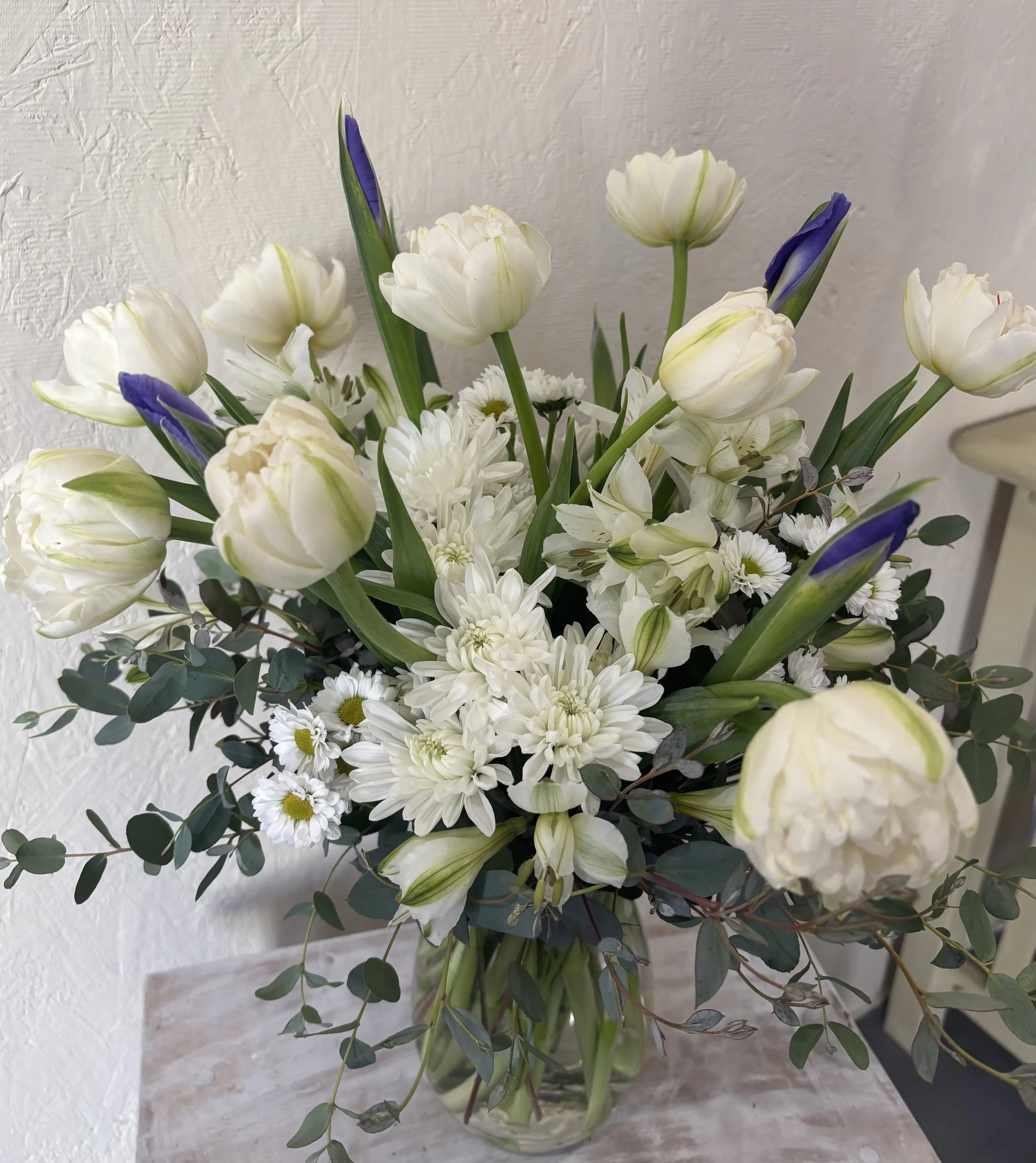 An arrangement for a celebration of life. The styles of arrangements shown begin at $90.00.